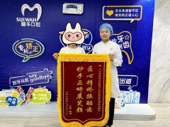 诊室门口,一位扎着高马尾的女孩紧紧攥着一面锦旗,锦旗上烫着几个俏皮的金...