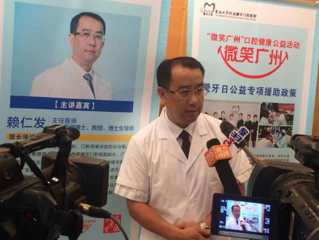 2015年9月19日上午9点30分,广州日报联合穗华口腔医院举办“名医大讲堂”爱牙专场讲座-《种植牙怎么种才安全无痛》在暨南大学曾宪梓国际会议厅二楼开讲,穗华口腔医院院长赖仁发、穗华口腔医院种植科主任冯智强受邀为广州日报读者作科普讲座,500多名读者先后赶来聆听了讲座。广州日报、中新网、腾讯网、南方卫视、G4出动等各大媒体进行了全媒体现场直播。