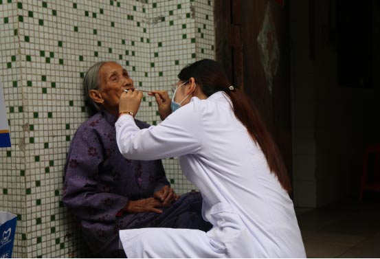 穗华口腔医院医生左云为赖锡芬母亲检查牙齿
