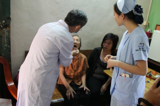 南方电视台今日一线与穗华口腔医护人员走进员村二横路一小区,为孤寡、独居老人送慰问金以及做口腔义诊。