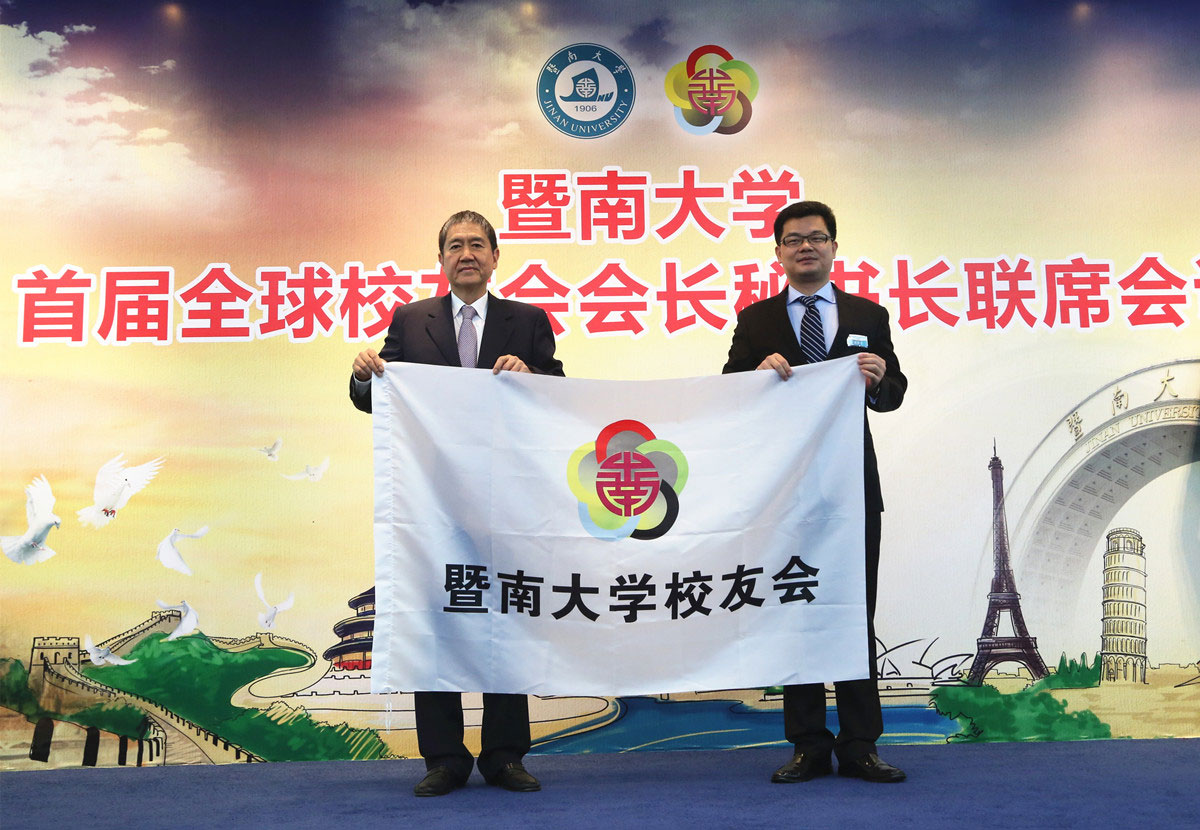 马有恒在致辞中说,目前校友总会在全球共有百余个校友组织,这是暨南人团结互助的表现,也是各地校友会和广大暨南校友为推动总会的建设和发展共同努力的结果。本次会议的召开意义重大、影响深远,同时希望联席会议延续下去,代代相传。随后,马有恒将校友总会的会旗正式授予本次承办联席会议的广州校友会,由肖胜方接受会旗。