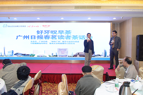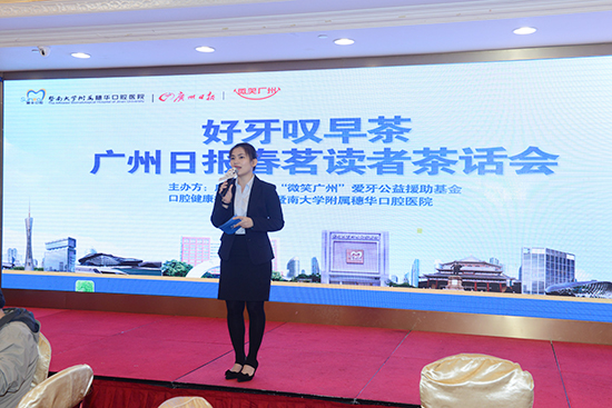 2016年3月19日上午8点30分,广州日报联合穗华口腔医院举办“好牙叹早茶•广州日报春茗读者茶话会”活动正式开始,活动共吸引200名读者共聚一堂免费叹早茶,同时穗华口腔医院院长赖仁发、穗华口腔医院张春雷博士为200名缺牙读者献上了一堂别开生面的种植牙讲座,此次活动还得到广州日报、南方都市报、腾讯网、中新网等媒体进行了全媒体现场报道。