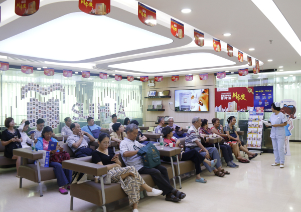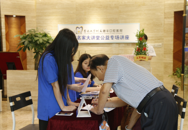 ▲缺牙患者早早到达活动现场签到入座
