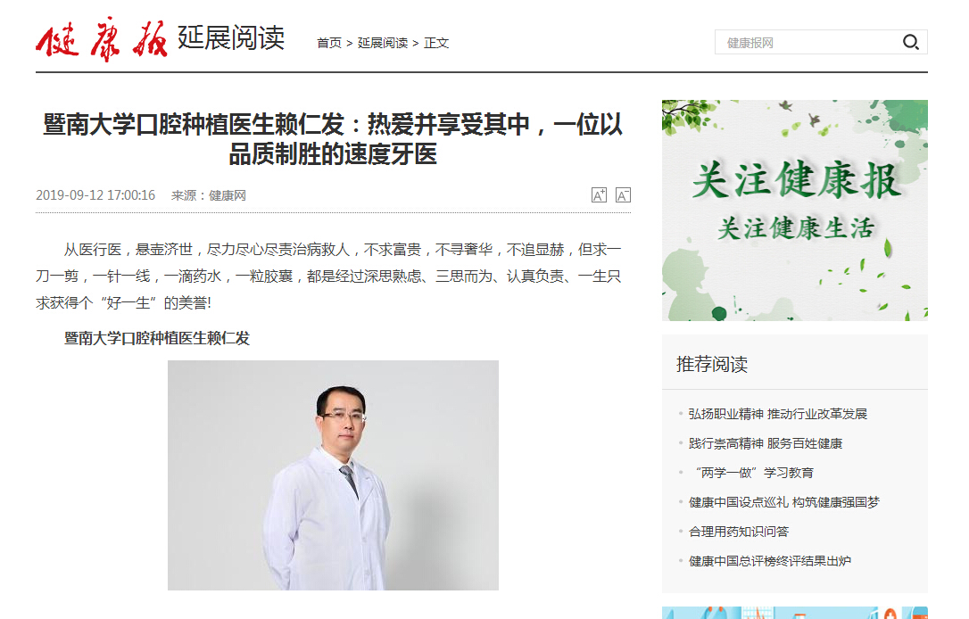 如今,提到暨南大学口腔种植医生赖仁发,认识他的人无不竖起大拇指,精湛的技术更是吸引海内外患者常专程慕名而来求治。
