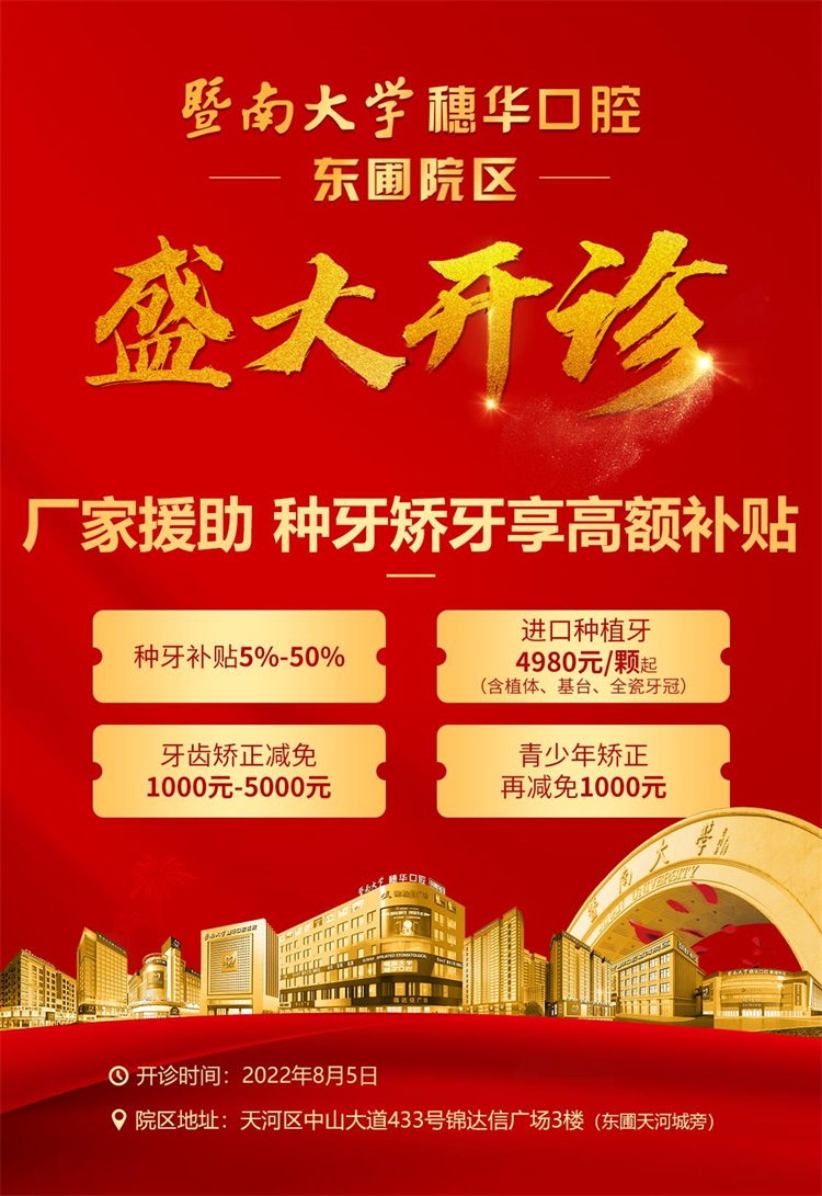 多年来,穗华口腔医院坚持以“人类口腔健康,全身健康的医疗事业”为使命,为积极响应2022《全民口腔健康计划》,帮助市民解决青少年错合畸形、成年人牙齿畸形,中老年人牙周病、牙齿缺失等口腔问题,穗华口腔医院特联合美国隐适美、时代天使、ORMCO、瑞士士卓曼等30多家国际知名厂家,开展“穗华口腔东圃院区开诊盛典暨2022院庆品牌厂商联盟惠民活动”,提供看牙高额补贴,并邀请名医会诊,切实缓解“看牙贵、看牙难、看名医更难”的问题,让市民群众享受家门口便捷、舒适、高品质的诊疗服务的同时,省钱看好牙!