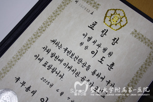 韩国警察厅为李院长颁布感谢奖