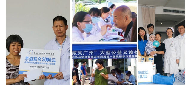 广州穗华口腔医院(华侨医院口腔专科医院)肩负社会责任,积极投身社会公益事业,定期开展公益讲座、爱心义诊、特殊群体救助帮扶、科普宣教等活动。联合爱心团体、热心媒体启动“微笑广州”主题活动,先后为近万名口腔患者解决牙齿问题,引起了广泛的社会好评,赢得了广大市民的信任与认可。